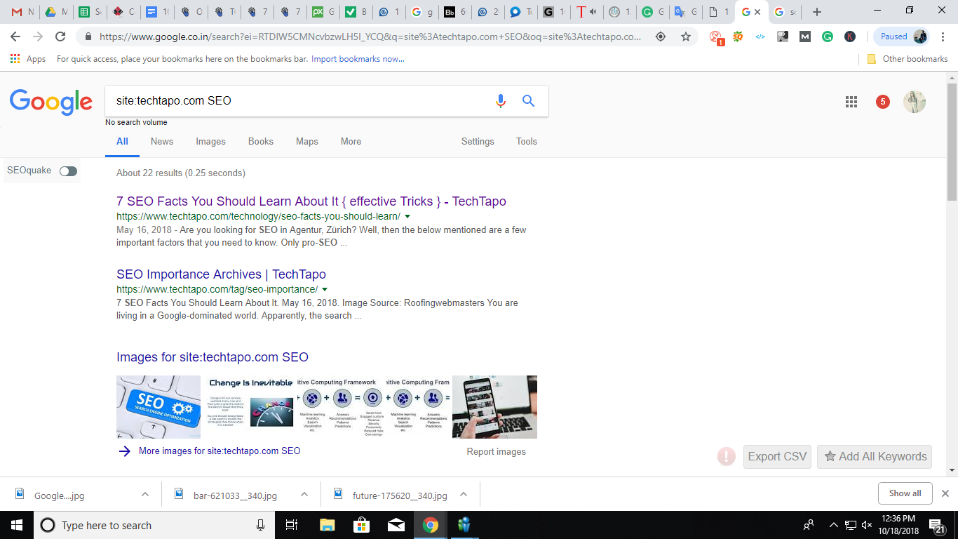 For example, if you search “site: techtapo.com SEO” it will bring up all page on techtapo with the word SEO in it. The syntax is a very simple to show you here.