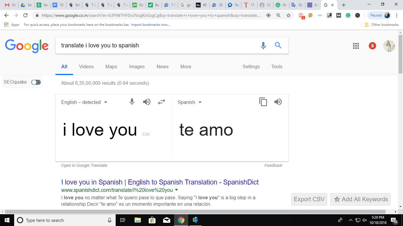 For example; if you want to search “I Love You” in the Spanish language than you can type…
